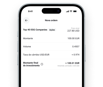 Compre suas ações favoritas e aproveite 0% de comissão até 100.000 EUR em negociações mensais para contas em qualquer moeda. Para investimentos acima deste limite existe apenas uma comissão de 0,2% (mín. 10 EUR). Investir em empresas cotadas em moedas diferentes poderá ter uma taxa de conversão de 0,5%.