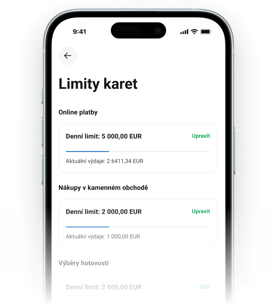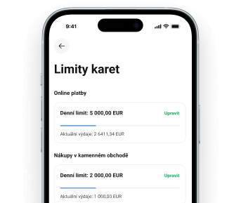 Efektivně kontrolujte své výdaje a nastavte si limity pro převody, výběry nebo platby kartou.