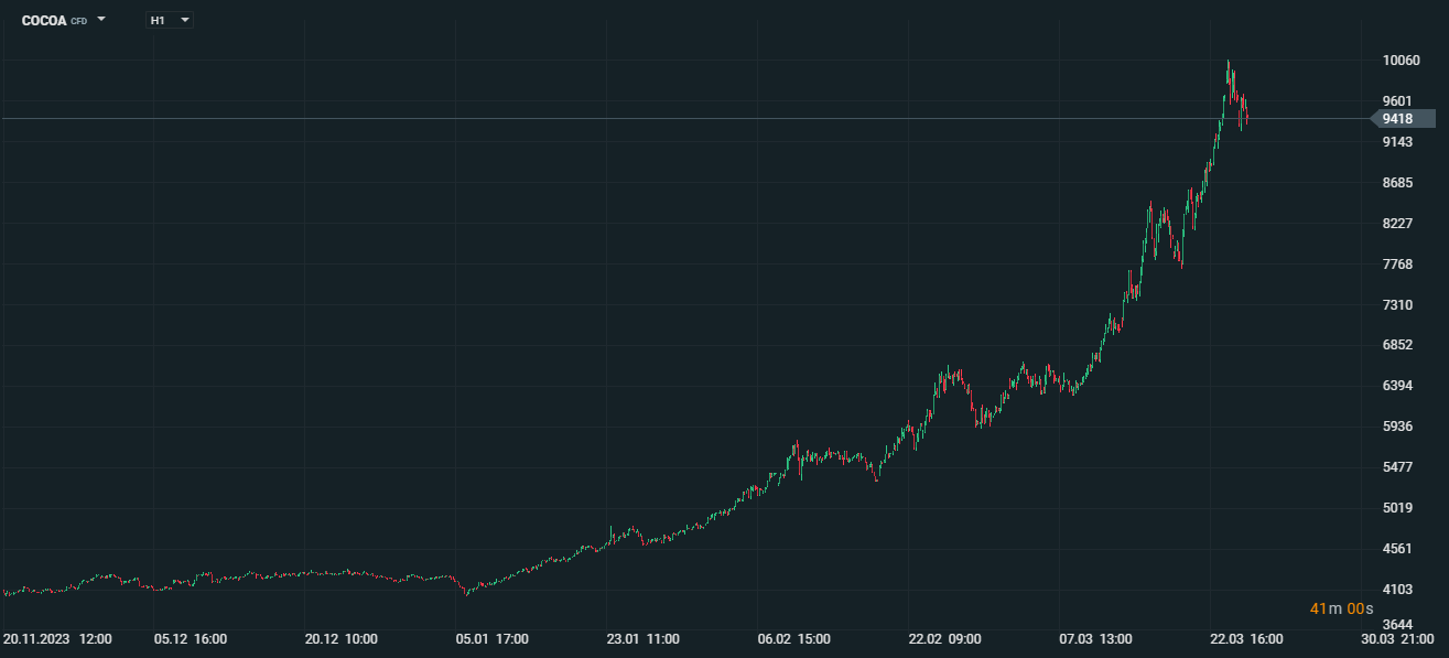 Chart: 1YR up 225%, cocoa price reaching $10,000 per tonne