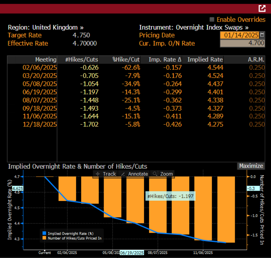 In the longer term, any recovery in the pound could be capped. One way to ease pressure on the UK bond market would be for the Bank of England to signal that it will cut interest rates at a faster pace in the future. So far, the BOE has been reluctant to do this due to inflation risks, however, if growth starts to falter then the prospect of a faster pace of rate cuts could become reality. Right now, there is just one full rate cut priced in by the BOE, as you can see below. However, with confidence levels rapidly declining for businesses, consumers and now financial markets, this increases the risk that the BOE will need to take more action.