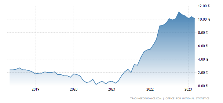 One of the key data points triggering the recent change in stance towards UK interest rate rises is the pace of UK inflation. In March, the UK central bank had predicted that UK inflation would start to slow down from more than 11% to around 9% in April and continue to slow by the end of the year to reach around 4% by the end of 2023. However, UK inflation remained stubbornly high in April with prices growing at 10.1% and exceeding most analyst expectations. Learn everything you need to know about inflation here.