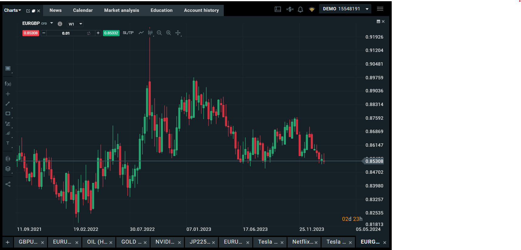 Investors can trade the GBP/EUR pair through a forex broker like XTB. When you trade the GBP/EUR pair, you are essentially speculating on whether the price of the pound will go up or down against the euro. If you think the price of the pound will go up, you will buy and profit from every rise in value of the forex pair. If you think the price of the pound will go down, you will sell and profit from every fall in price. Of course, if the prices go against your trade direction, you will suffer a loss.