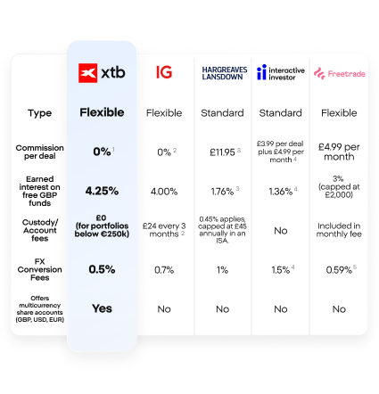 Choose from 7500+ Stocks & ETFs, and enjoy zero trading fees. 0% commission on monthly turnover equivalent up to 100,000 EUR. Transactions above this limit will be charged a commission of 0.2% (minimum 10 GBP). 0.5% currency conversion cost may apply.
