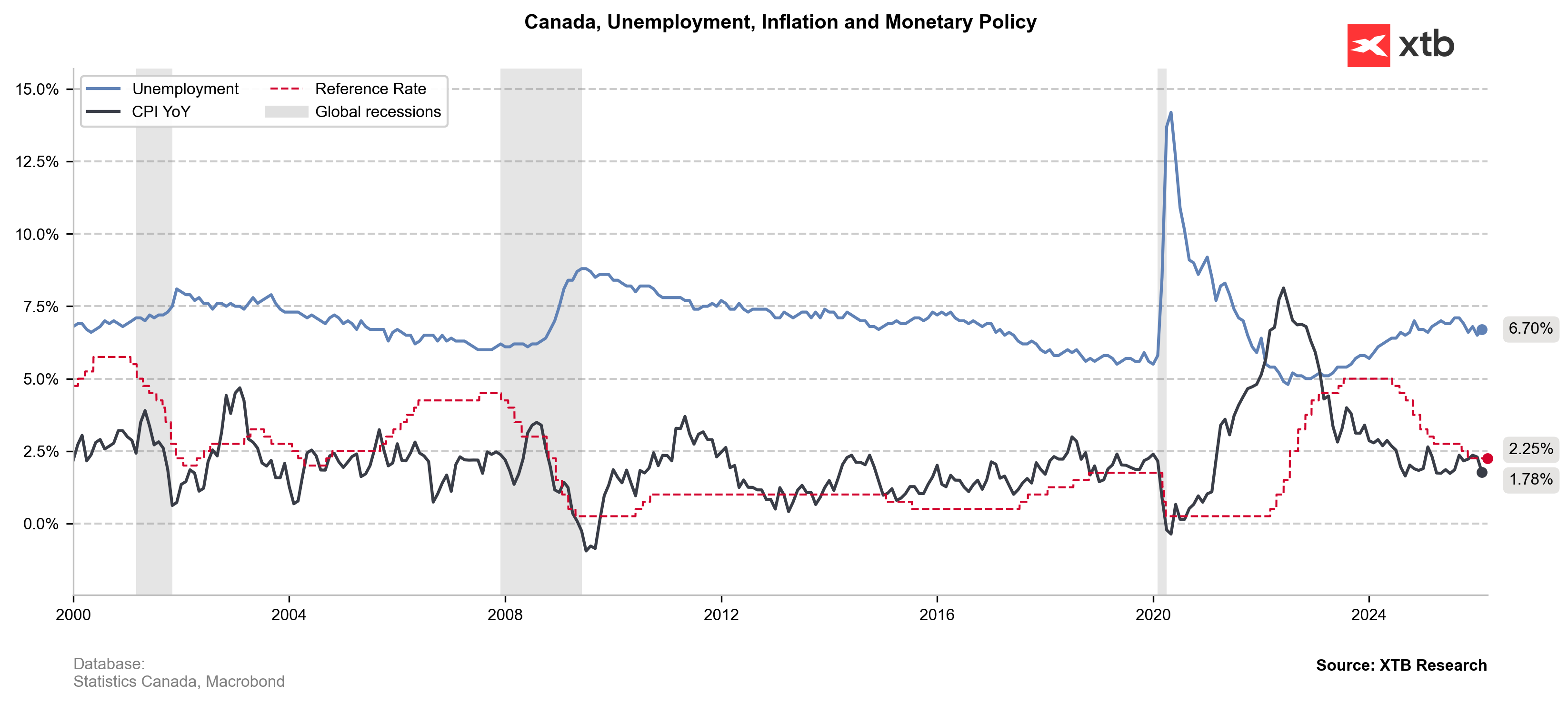 The inflation rate in Canada keeps lagging the 2-percent target. Source: XTB Reseach