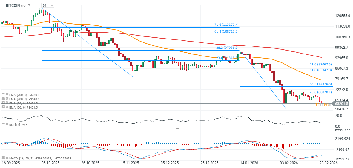 Bitcoin has fallen by nearly 30% over the past month, and the drawdown from the all-time high near $126k has now reached roughly 50%. Does the technical setup justify optimism about a potential rebound? The latest bullish impulse failed to hold, with price facing strong selling pressure around $72,300 after bouncing about 20% from a local low.