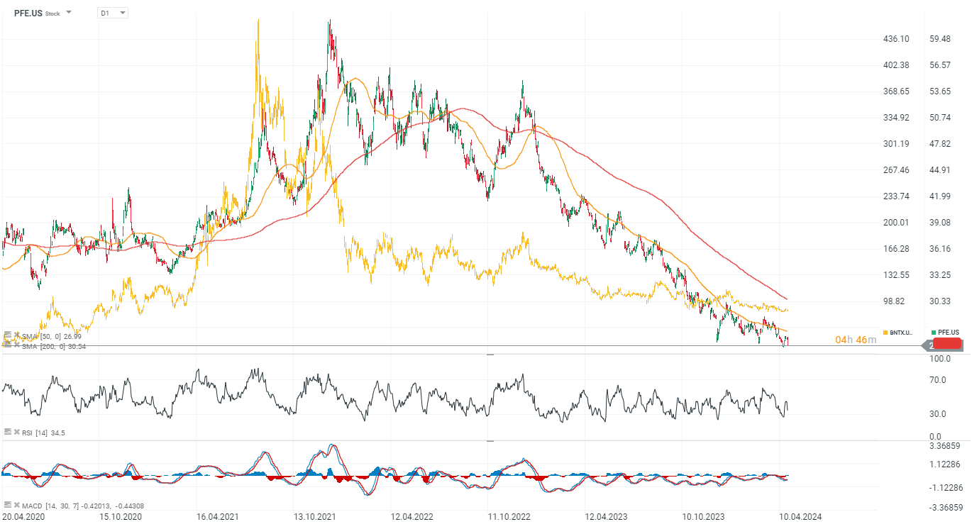 Pfizer (PFE.US) and BioNTech (BNTX.US) on D1 interval
