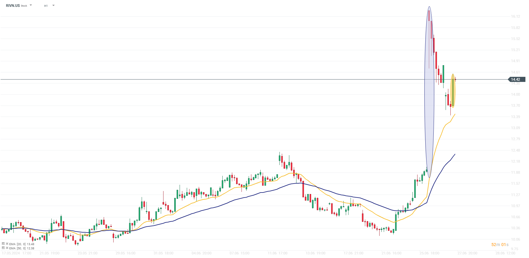 The company's presentation was very well received by the market, which partially erased Rivian's declines, which today lost -7% and is currently trading at levels only 2.7% below yesterday's closing price. Source: xStation