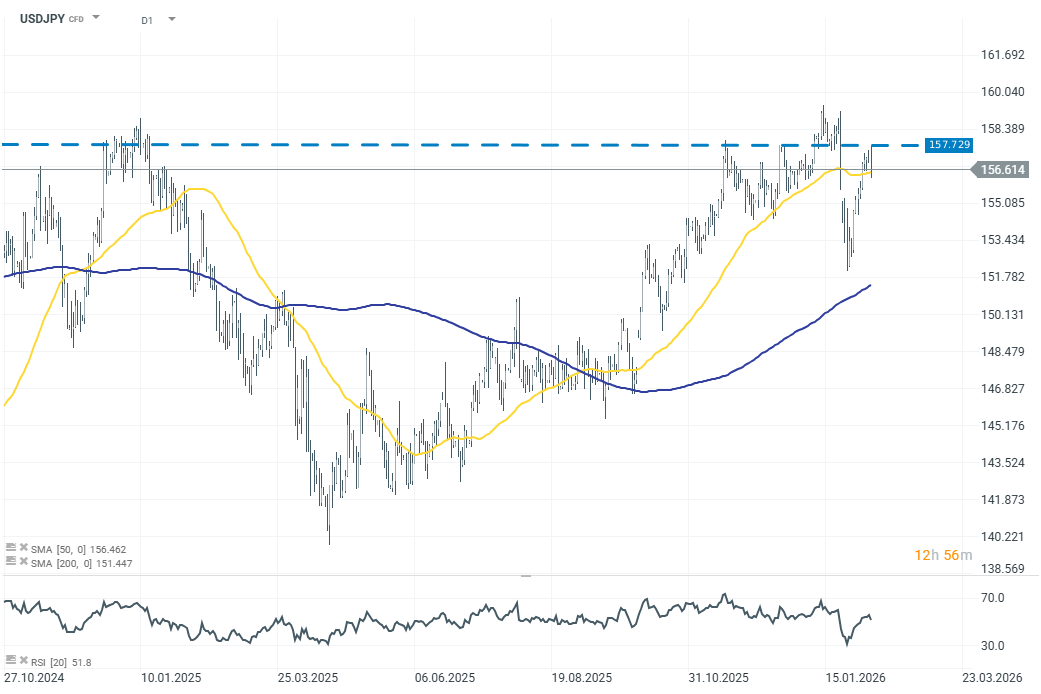 The yen, meanwhile, remains the key “shock absorber”—and authorities are clearly drawing a line against disorderly currency weakness. In thin and volatile Monday trading, USDJPY briefly rose to 157.729 before quickly retreating; following a series of intensified warnings, the pair fell by around 0.4% to 156.620, stabilising near the 5-day moving average (~156.600). With a coordinated message from the Prime Minister’s Office, the Ministry of Finance, and senior FX officials stressing “urgency” and opposing one-sided moves, intervention risk has clearly increased, which should cap near-term upside in USDJPY despite the expansionary policy outlook expected after Takaichi’s victory.