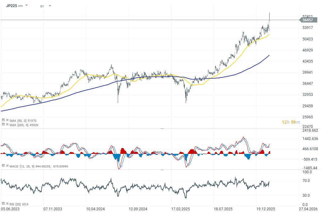 The main Japanese equity index, JP225 (Nikkei 225), is up just 0.25% today. However, that was enough to push the index to record highs. Source: xStation 5