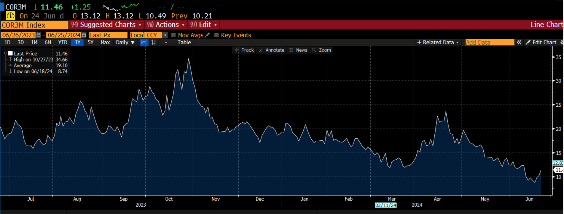 The sell off in Nvidia’s stock has focused minds on the outlook for US stocks in the second half of this year. It also shines a light on volatility indicators, which have been at depressed levels for the last few months. The Vix, which measures volatility in the S&P 500, has moved higher in recent sessions. It is currently at 13.4, which is still below the average for the last 12 months of 14.5. Thus, this sell-off is not particularly volatile so far, which explains why the sell off in Nvidia and Super Micro Computer have not led to a broader sell off in other asset classes, or in other regions.