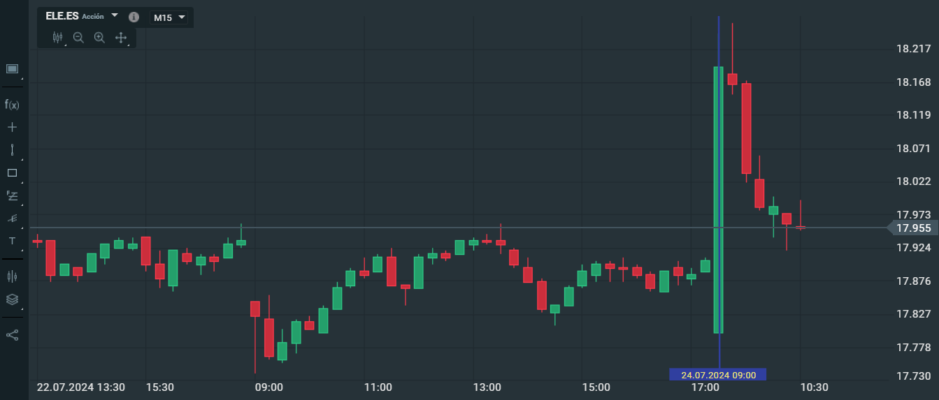 Cotización de Endesa con velas de 15 minutos