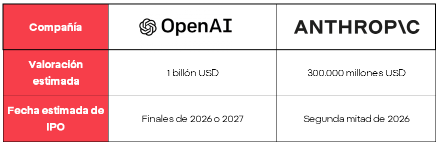 La batalla por el liderazgo de la inteligencia artificial generativa ya no se libra solo en laboratorios, benchmarks o lanzamientos de modelos. En 2026, la competencia entre OpenAI y Anthropic da un salto decisivo: ambas compañías preparan su salida a bolsa, trasladando su enfrentamiento al terreno bursátil.