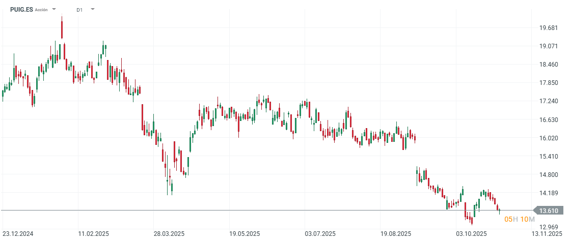 Las acciones de Puig caen un 25% en este 2025.