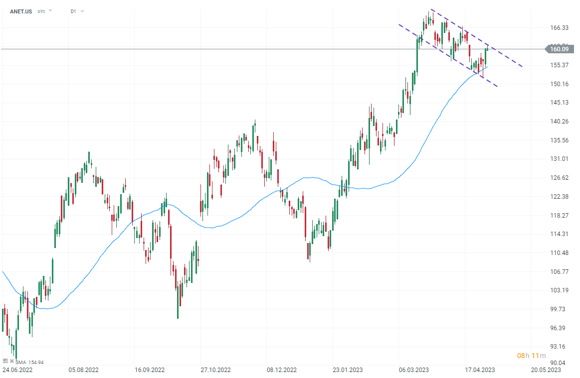 Arista Networks (ANET.US) ha estado en una formación de bandera últimamente pero ha logrado defender la SMA de 50 días . La acción del precio a largo plazo ha sido increíblemente alcista.