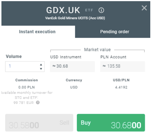 Après avoir fourni les documents requis, le processus de vérification demande généralement 1 à 2 jours. Une fois le compte ouvert avec succès, vous pouvez utiliser la plateforme de trading XTB. Les investisseurs peuvent acheter des actions de sociétés d’extraction d’or et de métaux précieux sous forme d’ETF.
