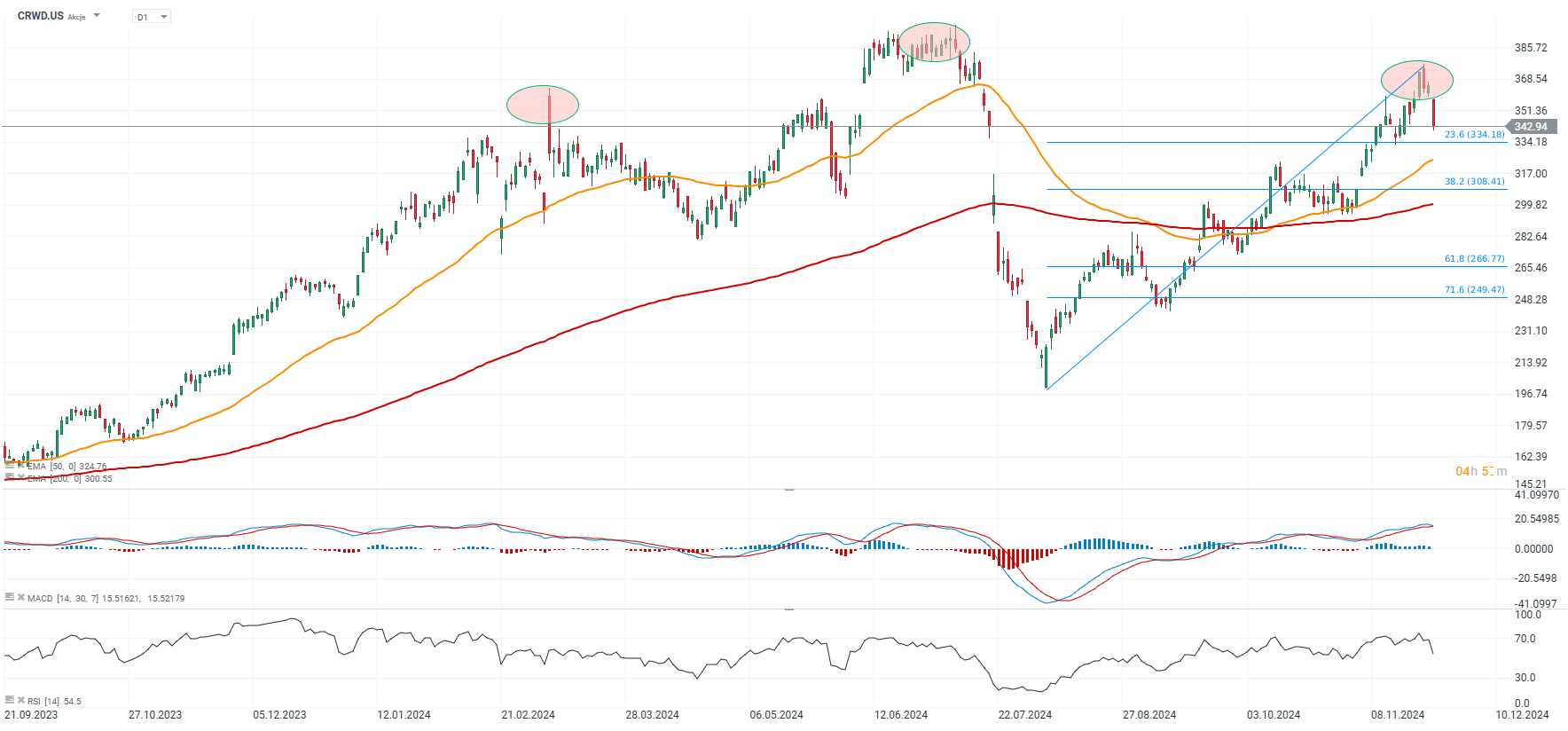 Shares of cybersecurity company CrowdStrike (CRWD.US) lose today almost 7% despite strong quarter, as cybersecurity provider missed Q4 2024 guidance. A software update in July caused widespread disruptions across industries, leading to lawsuits, including a $500 million claim by Delta Air Lines. Despite that, CEO George Kurtz remains optimistic, emphasizing ability to recover and accelerate ARR growth by 2026. Investors expect that Falcon platform and new Next-Gen SIEM offering will drive future growth.