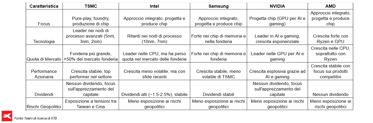 Acquisto di azioni individuali: Investire in aziende leader nella produzione di semiconduttori, come TSMC, Intel, Nvidia o Qualcomm.