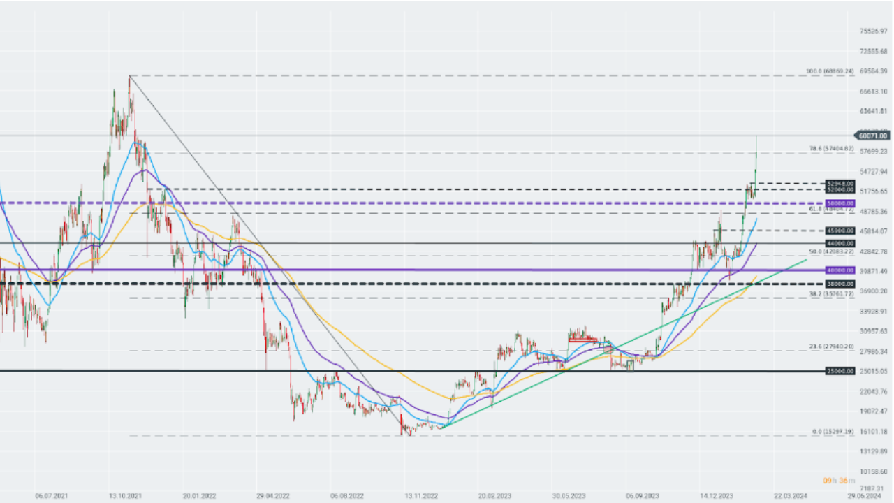 Bitcoin: per la prima volta da novembre 2021 testa la barriera dei 60.000 USD. Fonte: xStation