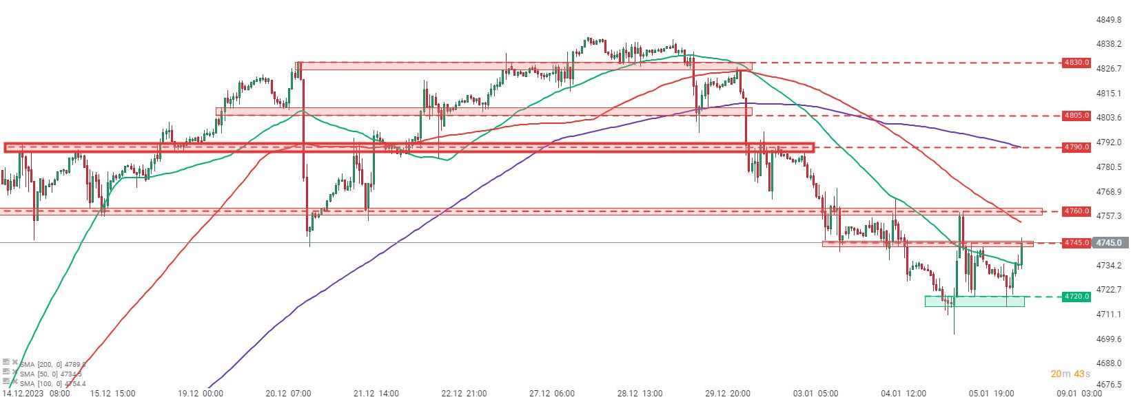 Los futuros del S&P 500 (US500) cotizan al alza hoy, y las subidas se aceleran tras el inicio de la sesión de efectivo en EE.UU. Si observamos el índice en el intervalo H1, podemos ver que los alcistas están intentando superar la zona de resistencia de 4.745 pts, que se probó varias veces recientemente. Si los compradores superan esta área, la siguiente resistencia en línea se puede encontrar en el área de 4,760 pts. Una ruptura haría que la situación técnica a corto plazo fuera más alcista y, dado un flujo de noticias ligero, los aspectos técnicos pueden desempeñar un papel clave en los movimientos de precios de hoy.