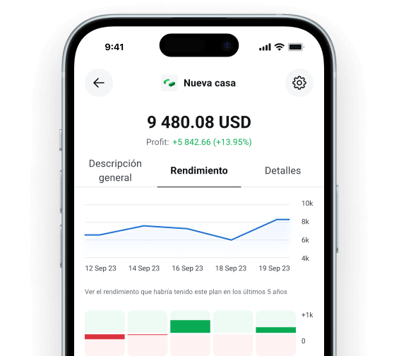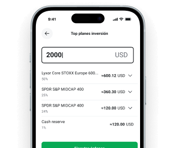 Crea tu Plan de forma sencilla gracias a la interfaz intuitiva que te guiará paso a paso. Empieza a invertir desde tan solo 15 EUR o equivalente en la divisa de la cuenta.