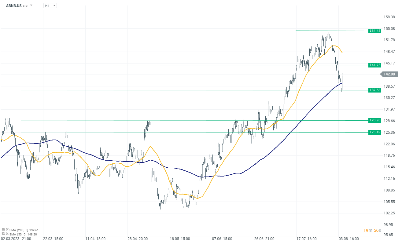 Airbnb (ABNB.US), intervalo H1, fonte xStation 5