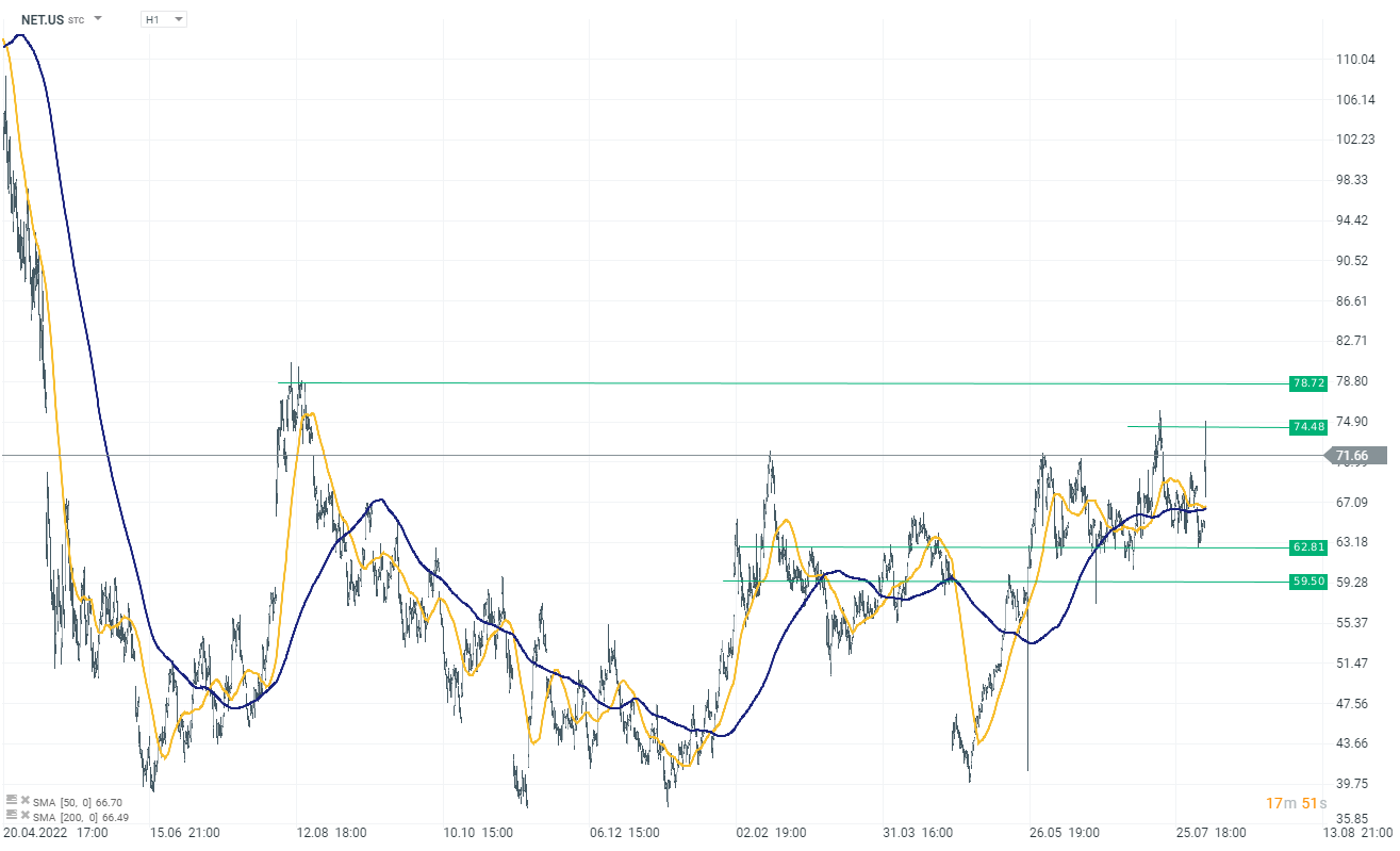 Cloudflare (NET.US), intervalo H1, fonte xStation 5