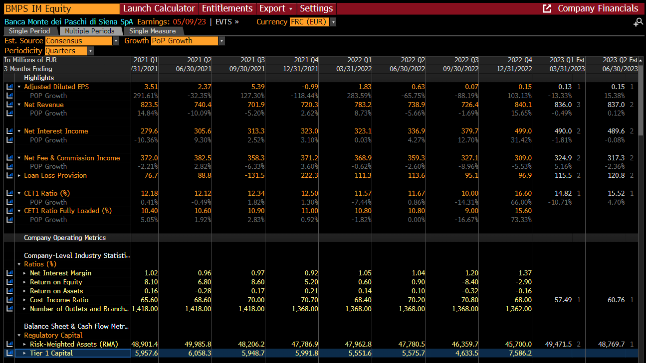 Apesar do facto de as ações do banco já estarem a ser negociadas numa tendência de baixa há muitos anos, os auxílios estatais e os planos preventivos implementados parecem estar a apoiar a operacionalidade comercial do Monte dei Paschi di Siena (BMPS.IT). O desempenho está a melhorar, o que pode tornar a entidade mais atrativa para futuras oportunidades de fusões e aquisições. Os últimos resultados trimestrais serão apresentados amanhã. Fonte: Bloomberg
