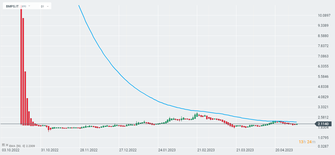 Gráfico Heikin Ashi das ações do Monte dei Paschi di Siena (BMPS.IT). Fonte: xStation 5