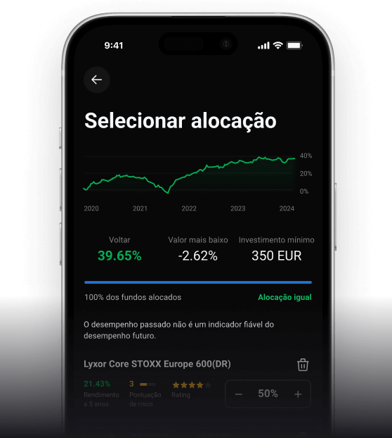 Descubra uma forma mais inteligente de investir passivamente em ETFs. A interface intuitiva permitir-lhe-á criar facilmente o seu próprio plano de investimento e os pagamentos automáticos permitir-lhe-ão financiá-lo regularmente.