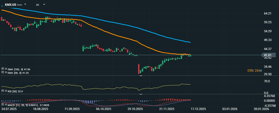Spoločnosť CarMax Inc. oznámila medziročný pokles porovnateľných predajov jazdených áut o 9 % v 3. kvartáli, čím prekonala negatívne očakávania analytikov a ešte viac prehĺbila neistotu ohľadom svojej budúcnosti. Analytici oslovení agentúrou Bloomberg očakávali pokles o 8,4 %, firma však už skôr varovala pred možným poklesom medzi 8 % až 12 %.
