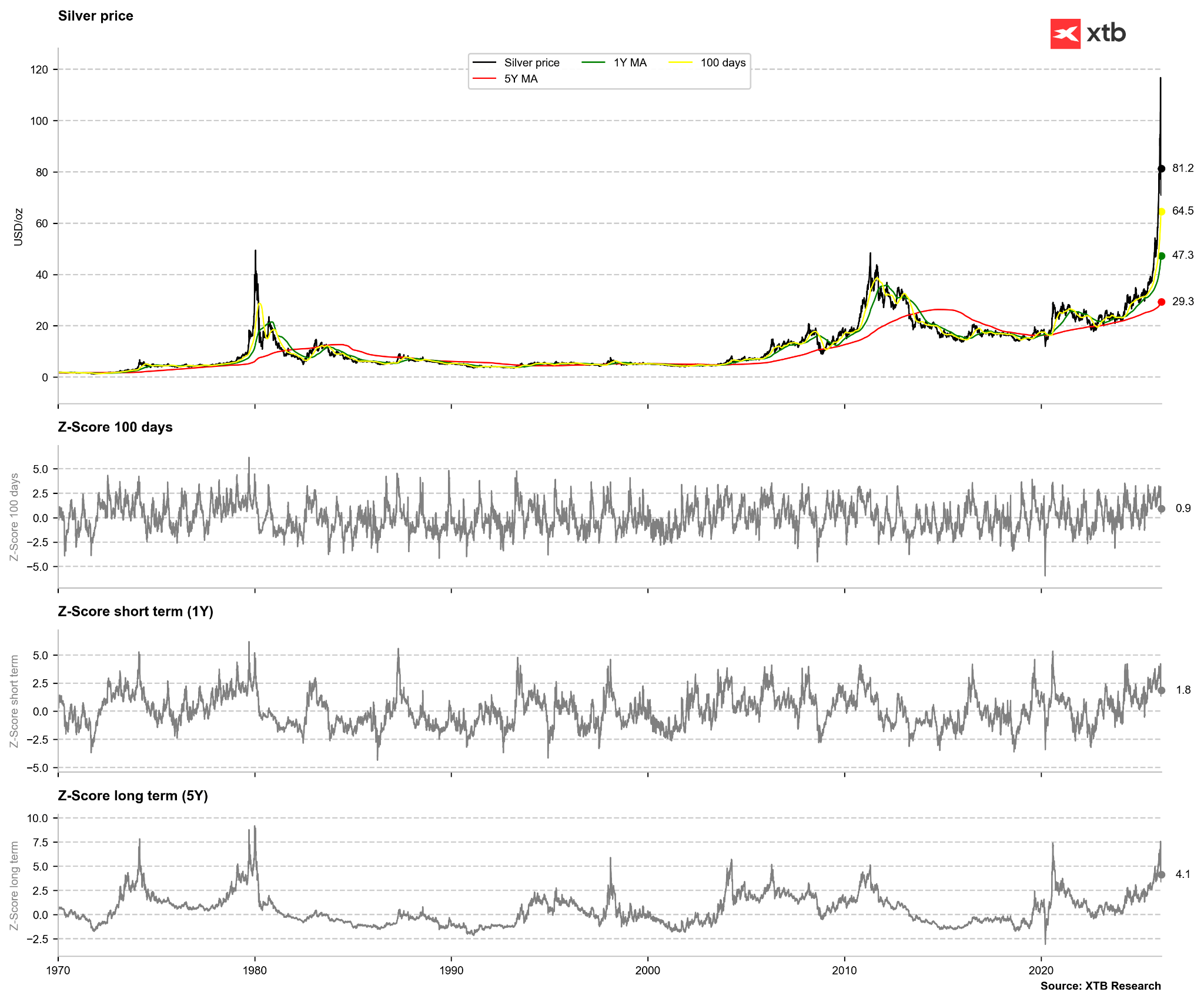 Điểm đáng chú ý là đây là một sự điều chỉnh tăng rất mạnh so với tháng 11 năm ngoái, khi JP Morgan chỉ dự báo giá trong vùng 50–60 USD/oz. Kể từ đó, thị trường đã thay đổi lớn với một đợt tăng giá mạnh, từng khiến bạc vọt lên trên 120 USD/oz.