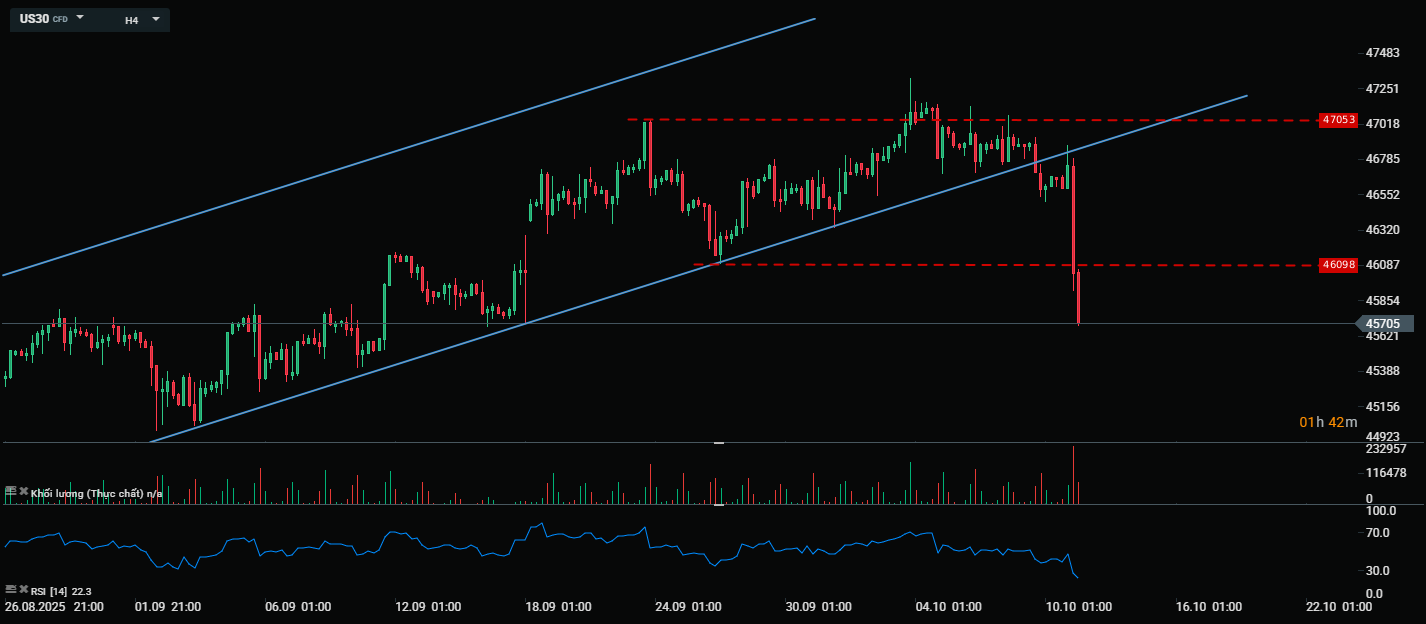 Các chỉ số chứng khoán Mỹ ghi nhận mức giảm mạnh trong phiên ngày hôm qua, bởi tin tức thuế quan và các vấn đề về việc sa thải nhân viên liên bang. Tuy nhiên, việc áp thuế 100% lên Trung Quốc xảy ra khi thị trường đã đóng cửa, chính vì vậy, nếu không có thay đổi gì thì các chỉ số mở phiên ngày thứ Hai sẽ ghi nhận mức giảm mạnh hơn nữa. Bên cạnh đó, thị trường tiền điện tử cũng "sập sàn", Bitcoin rớt về mốc 100.000 USD rồi nhanh chóng phục hồi trở lại trên mốc 110.000 USD.