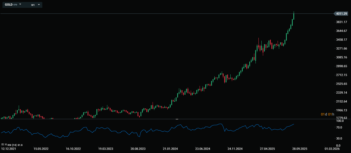 Trong khi đó, giá Vàng đã lấy lại được nhịp tăng sau khi vượt qua được mốc 4.000$ thêm một lần nữa. Bối cảnh hiện tại đang tiếp tục tạo đà cho giá Vàng thiết lập thêm các mức đỉnh cao hơn trong tương lai.